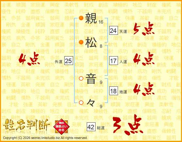 親(16画)松(8画) 音(9画)々(9画)