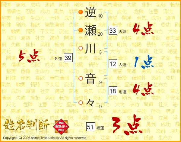 逆瀬川音々さんの総運は51画の3点!
