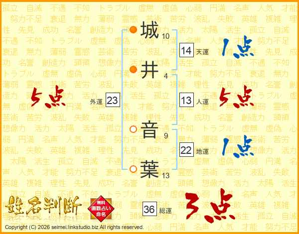 城(10画)井(4画) 音(9画)葉(13画)
