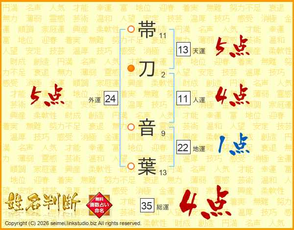 帯刀音葉さんの総運は35画の4点!