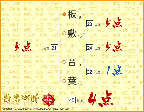 板敷音葉さんの総運は45画の4点!