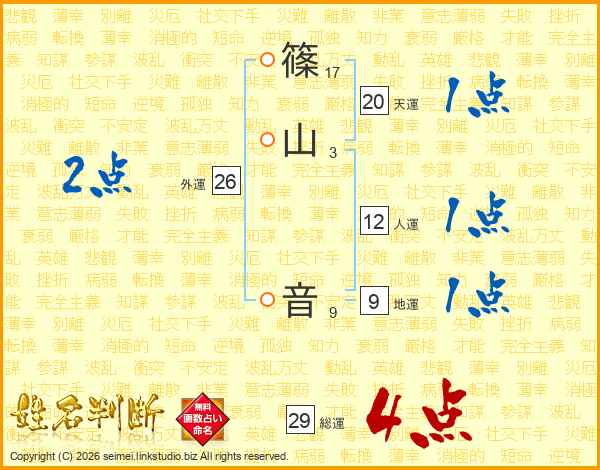 篠山音さんの総運は29画の4点!