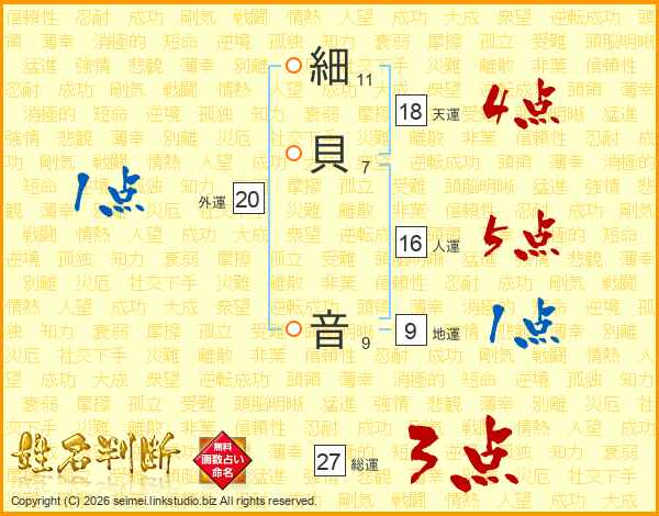 細貝音さんの総運は27画の3点!