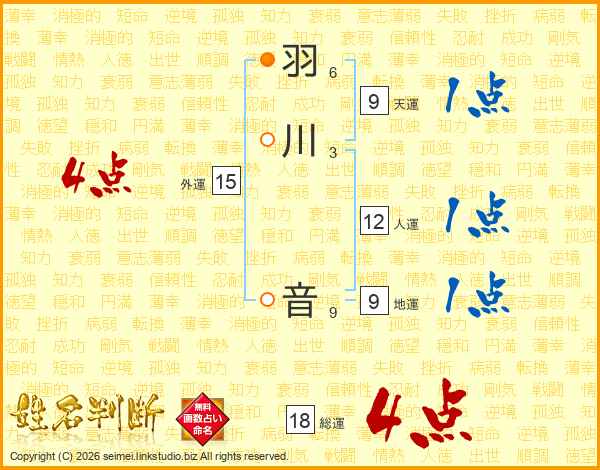 羽川音さんの総運は18画の4点!