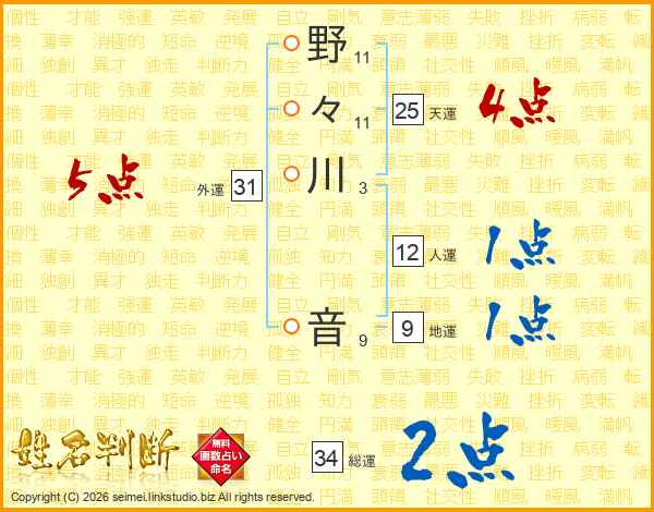 野々川音さんの総運は34画の2点!