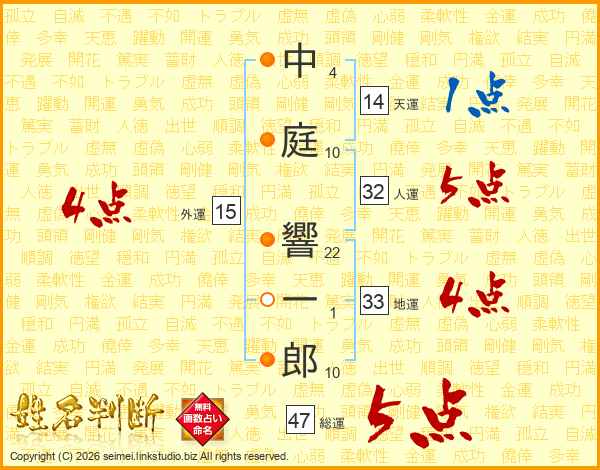 中庭響一郎さんの総運は47画の5点!