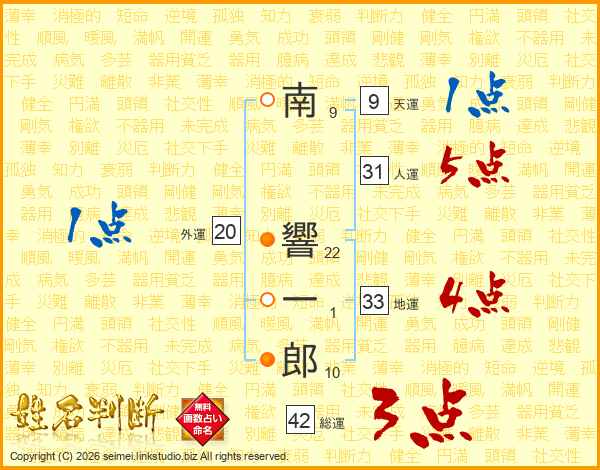 南響一郎さんの人運は31画の5点!