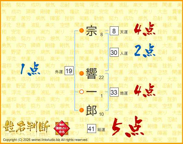 宗響一郎さんの総運は41画の5点!