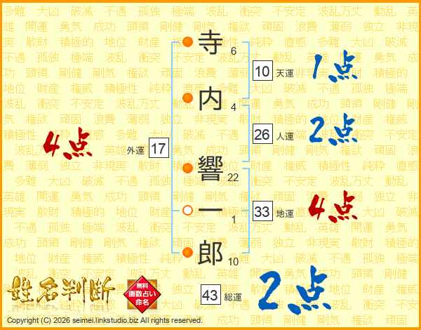 寺内響一郎さんの人運は26画の2点!