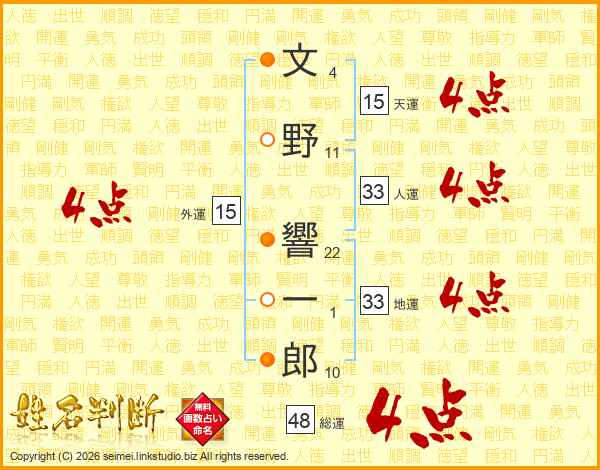 文野響一郎さんの人運は33画の4点!
