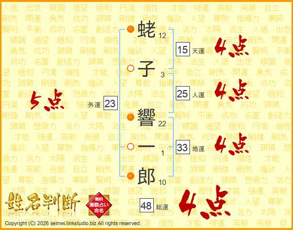 蛯子響一郎さんの総運は48画の4点!