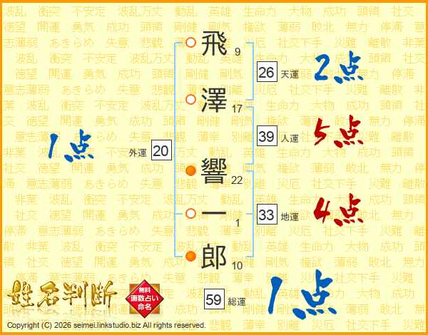 飛澤響一郎さんの人運は39画の5点!
