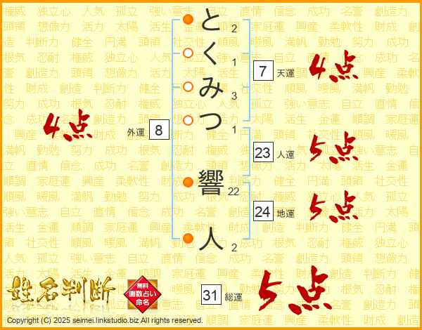 と(2画)く(1画)み(3画)つ(1画) 響(22画)人(2画)