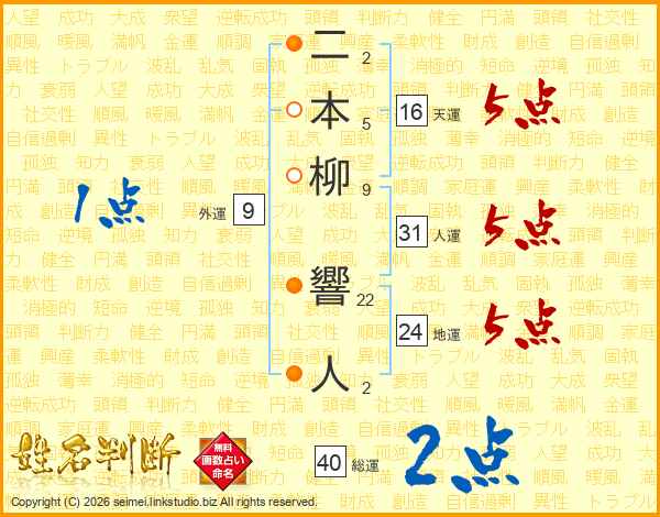二(2画)本(5画)柳(9画) 響(22画)人(2画)