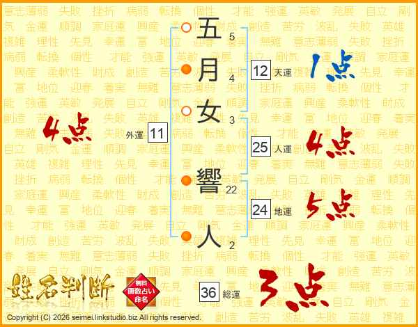 五(5画)月(4画)女(3画) 響(22画)人(2画)