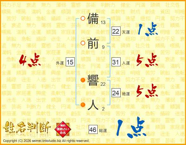 備前響人さんの総運は46画の1点!