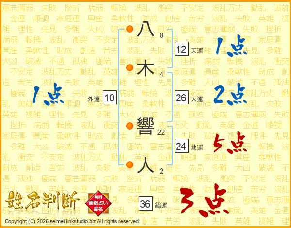 八木響人さんの人運は26画の2点!