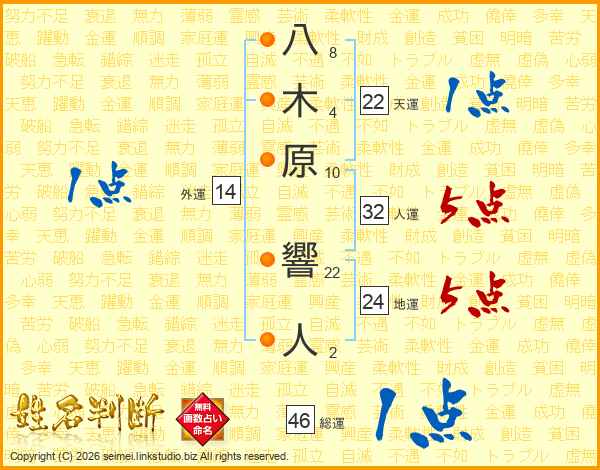 八(8画)木(4画)原(10画) 響(22画)人(2画)