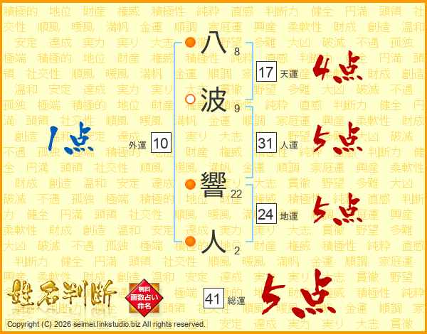 八波響人さんの総運は41画の5点!