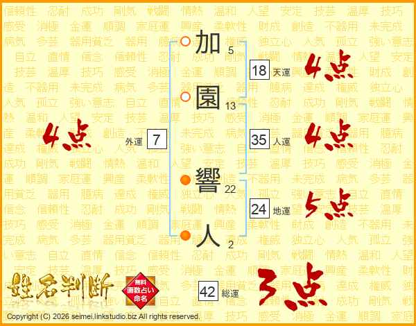 加園響人さんの総運は42画の3点!