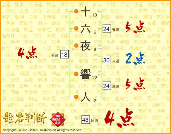 十六夜響人さんの総運は48画の4点!