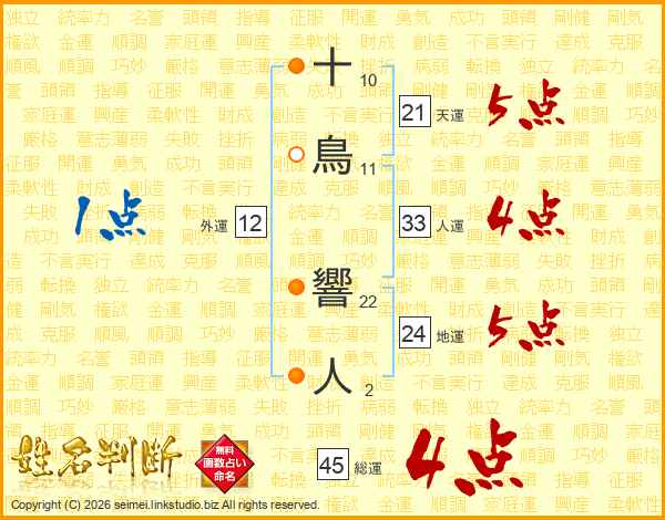 十鳥響人さんの総運は45画の4点!
