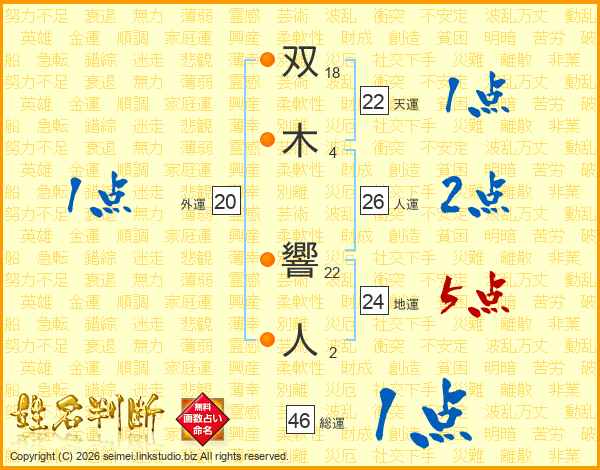 双木響人さんの人運は26画の2点!