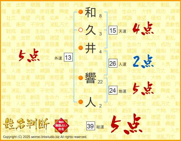 和(8画)久(3画)井(4画) 響(22画)人(2画)