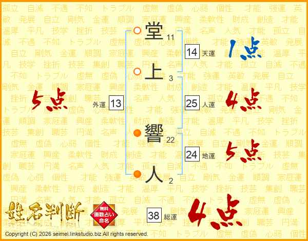 堂上響人さんの総運は38画の4点!