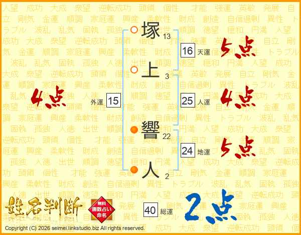 塚上響人さんの人運は25画の4点!
