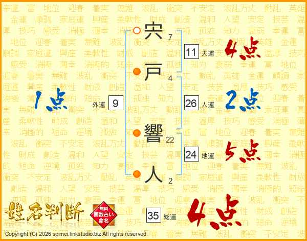 宍戸響人さんの人運は26画の2点!