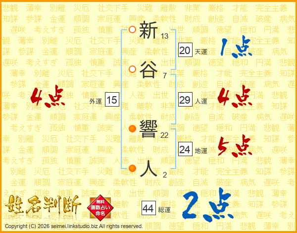 新谷響人さんの総運は44画の2点!
