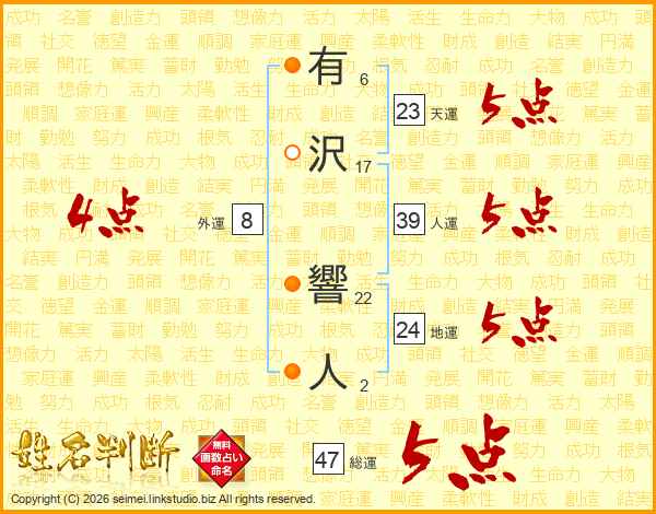 有沢響人さんの総運は47画の5点!