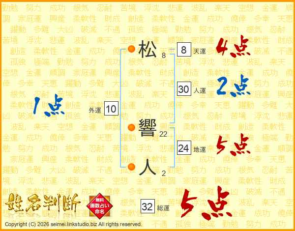 松響人さんの総運は32画の5点!