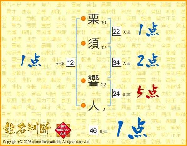 栗須響人さんの総運は46画の1点!