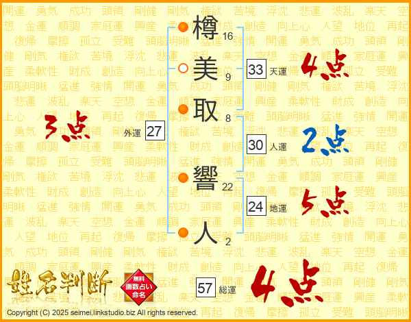 樽(16画)美(9画)取(8画) 響(22画)人(2画)