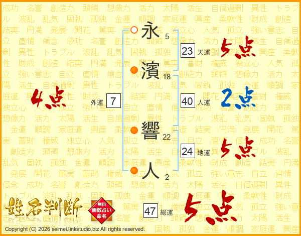 永濱響人さんの総運は47画の5点!