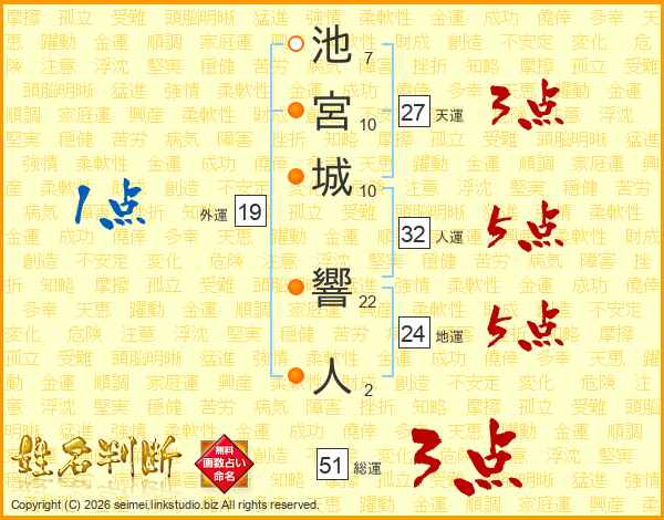 池宮城響人さんの総運は51画の3点!