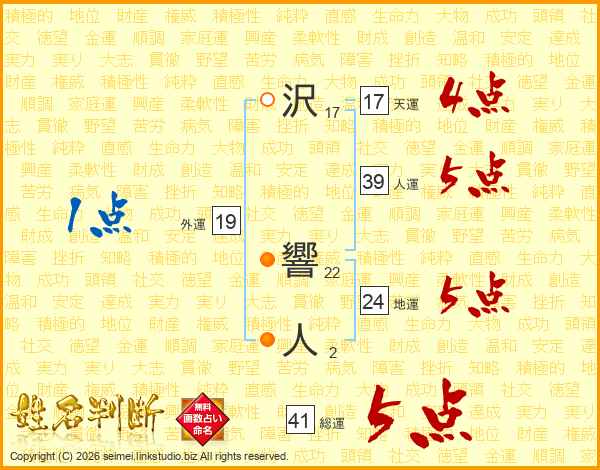 沢響人さんの総運は41画の5点!