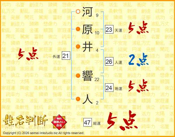 河(9画)原(10画)井(4画) 響(22画)人(2画)