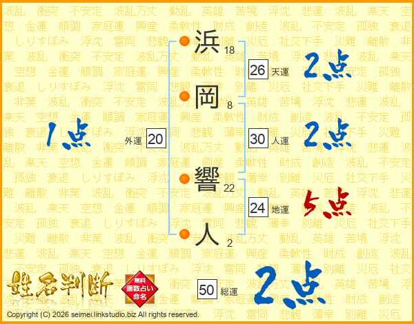 浜岡響人さんの天運は26画の2点!
