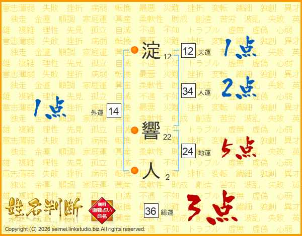 淀響人さんの地運は24画の5点!