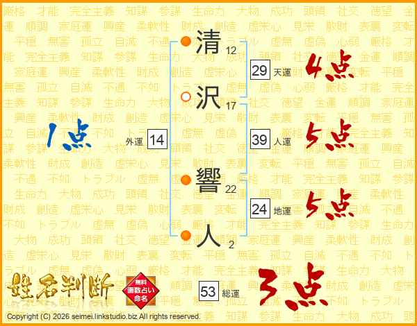 清沢響人さんの総運は53画の3点!
