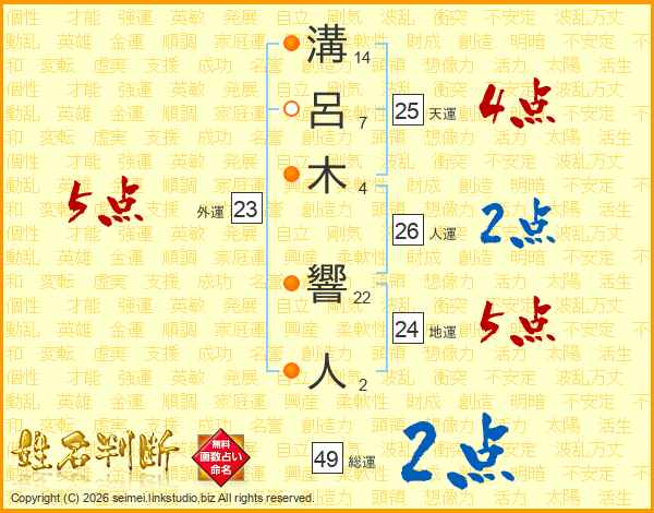 溝(14画)呂(7画)木(4画) 響(22画)人(2画)