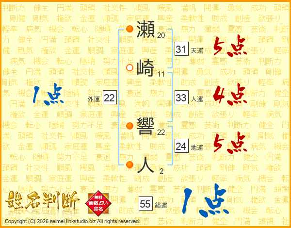 瀬崎響人さんの天運は31画の5点!