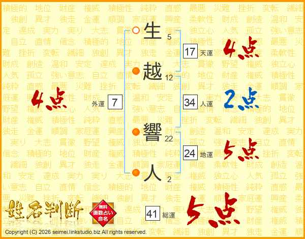 生越響人さんの総運は41画の5点!