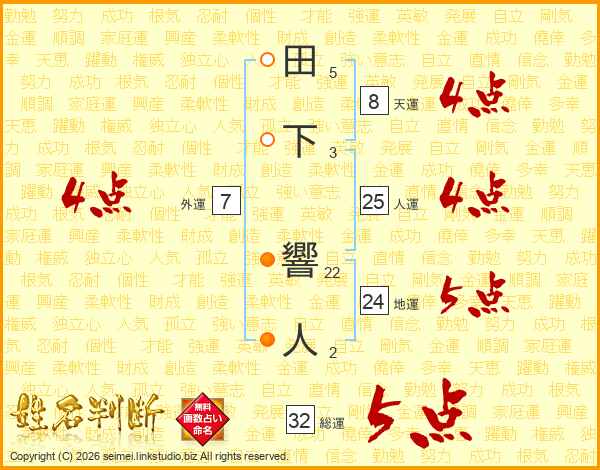 田下響人さんの人運は25画の4点!