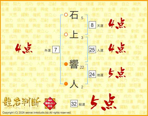 石上響人さんの総運は32画の5点!