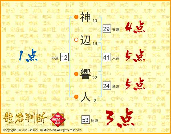 神辺響人さんの総運は53画の3点!
