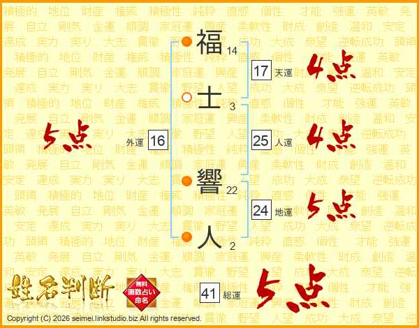 福(14画)士(3画) 響(22画)人(2画)